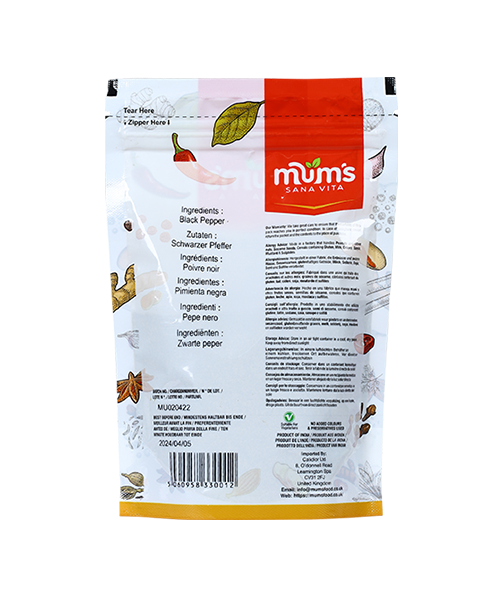 With the distinctively strong and spicy flavour, black pepper is one of the most popular spices in the world. It's used as a seasoning and flavouring agent, in medicines, and even in beauty products. Our pure black pepper is sourced only from the finest regions, and processed carefully. Enjoy a fresh out-of-the-mill taste every time you cook with it!